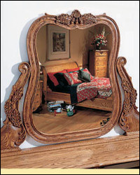 The perfect reflection of your good taste when you purchase Oakwood Interiors fine furniture! Beautiful matching carvings, swivel style hardware and 3/16" thick mirror with a 1" plus bevel.
