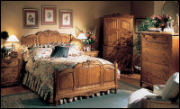 Extra height adds valuable storage area in the same footprint as a standard dresser. With 6 standard and 2 maximum storage drawers this ensemble offers beauty and capacity. The large mirror features 3/16" thick mirror with a 1" plus bevel surrounded with matching carvings.