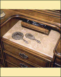 With 7 standard and 2 Maximum Storage drawers, the Cameo dresser offers beauty and capacity. Add the Tri-View or Wall mirror option that feature 3/16" thick mirror with a 1" plus bevel to complete your ensemble. Your Cameo dresser will feature a solid Travertine insert and confidential velvet jewelry compartment.