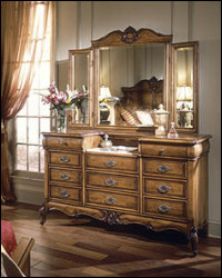 With 7 standard and 2 double depth maximum Storage drawers, giving you extra storage space for larger items, the Cameo dresser offers beauty and capacity. Add the Tri-View or Wall mirror option that feature 3/16" thick mirror with a 1" plus bevel to complete your ensemble.